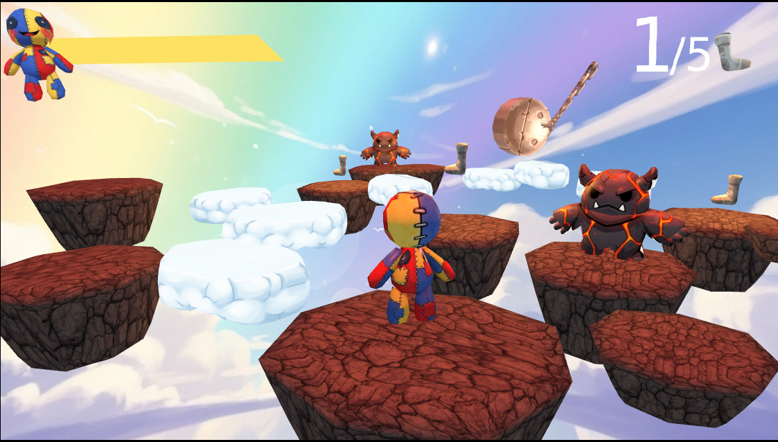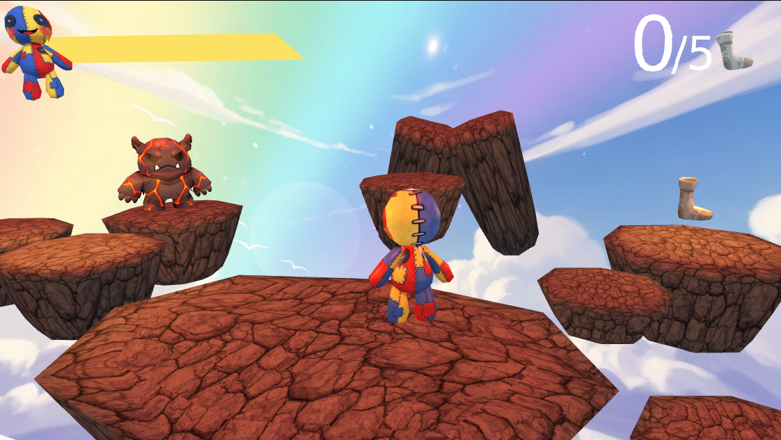 In this adventure, you play as a little rag doll trying to recover the missing socks and find the way back home. Explore the level, collect the socks, and overcome the challenges along the way.